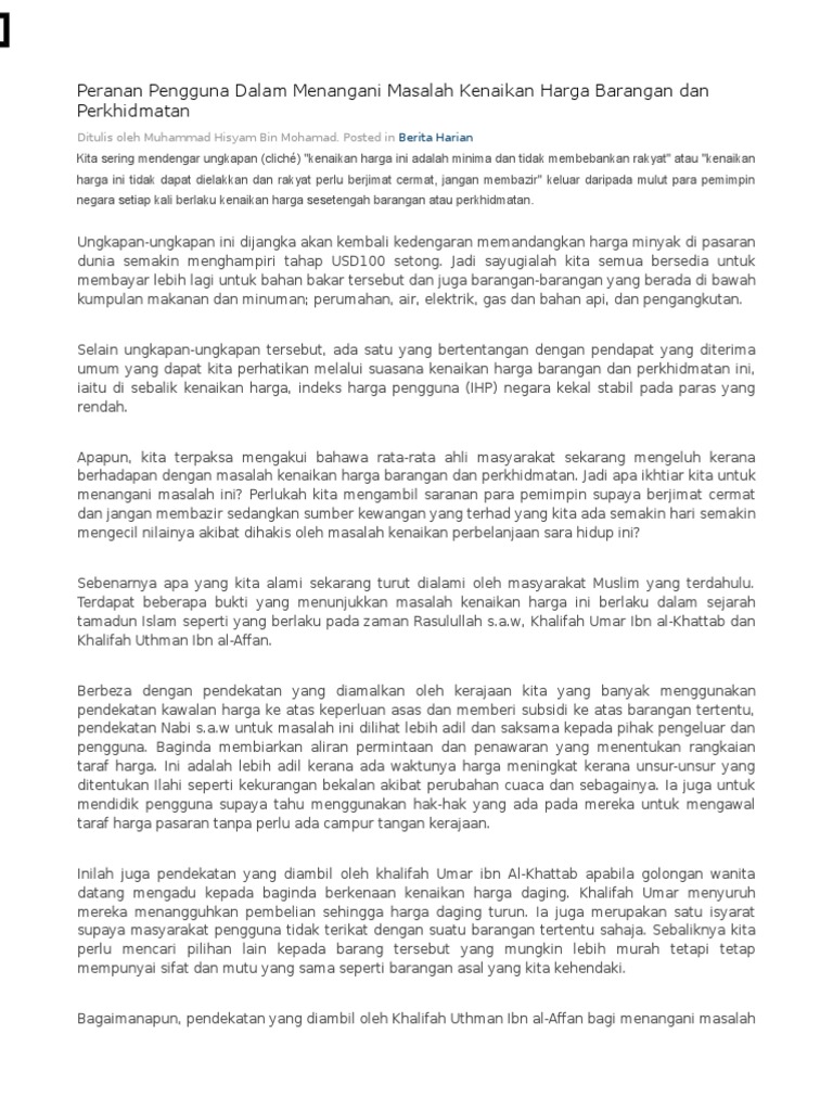 Masalah Kenaikan Harga Barang : Harga tersebut mengalami kenaikan pesat jika dibandingkan dengan sebelum lebaran yang mencapai rp28.000 per kilogram.. Kenaikan harga barang atau inflasi tentu disebabkan oleh beberapa faktor. Belakangan ini, kenaikan harga barang telah melanda negara kita. >> allah jugalah yang menetapkan semua harga, mahal dan murah. Namun, apabila pemerintah salah langkah, maka akan menyebabkan masalah besar yang dapat sumber daya manusia merupakan kemampuan dari seorang individu yang dapat memberikan 1. Satu daripada langkah yang perlu diambil untuk menangani masalah ini ialah setiap rakyat malaysia perlulah mempraktikkan amalan berjimat cermat.