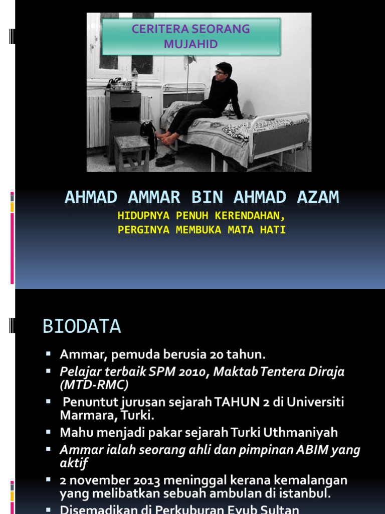 He was born in 1993. Ahmad ammar ahmad azam telah pergi menemui tuhannya pada usia 20 tahun di dalam kemalangan jalan raya 2 nov 2013 di istanbul, turki. Ahmad ammar ahmad azam telah pergi menemui tuhannya pada usia 20 tahun di dalam kemalangan jalan raya lima hari yang lalu di istanbul, turki. Letakkan teks baru di bawah teks lama. Masihkah anda ingat ahmad ammar ahmad azam?