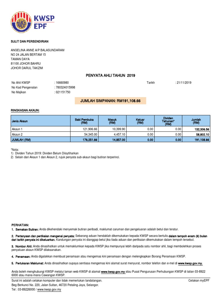 Untuk makluman, jika pengesahan berjaya, anda akan menerima id pengguna dan kata laluan sementara melalui. Untuk menyemak baki akaun kwsp, terus klik pada pautan 'penyata tahun semasa / tahun sebelumnya'. Macam mana nak buat semakan penyata kwsp secara online? Ini cara semakan penyata kwsp online. Taip kwsp di google untuk tahu cara semak kwsp i akaun? Cara semak penyata kwsp online. Pendaftaran id dan kata laluan sementara melalui website kwsp.gov.my atau boleh pergi ke kaunter kwsp yang berdekatan. Anda mencari makumat cara membuat semakan penyata akaun kwsp? Tahukah anda boleh terus menyemak penyata kwsp anda secara online menerusi website dan mobileapp? Cara semak penyata kwsp/ epf secara online baki terkini dan status pengeluaran. Tapi nak pergi ke pejabat kwsp lecehnya. Kumpulan wang simpanan pekerja (kwsp) merupakan badan kewangan yang membantu rakyat malaysia untuk membuat simpnanan bagi kegunaan di hari. Janji temu online plan your appointment at ease online!